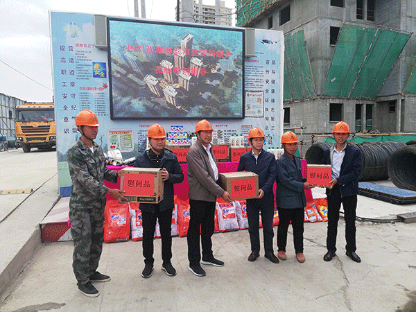 工程公司指導(dǎo)員徐修同對(duì)賈局長(zhǎng)一行的到來(lái)表示熱烈的歡迎。隨后,賈局長(zhǎng)一行參觀了項(xiàng)目施工現(xiàn)場(chǎng),徐修同就君豪項(xiàng)目做了簡(jiǎn)單介紹。賈局長(zhǎng)對(duì)施工現(xiàn)場(chǎng)各項(xiàng)工作的有序開展表示充分肯定,同時(shí)叮囑項(xiàng)目管理人員不僅要保證工程質(zhì)量、安全和進(jìn)度,還要切實(shí)保障建筑工人的合法權(quán)益,關(guān)心建筑工人的工作與生活。最后賈局長(zhǎng)一行將慰問(wèn)品發(fā)放到工人的手中。