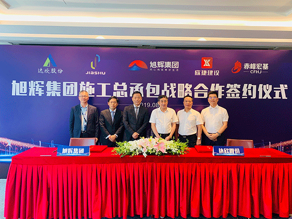 在旭輝集團(tuán)執(zhí)行總裁陳東彪先生與達(dá)欣集團(tuán)董事長(zhǎng)馬和軍先生的共同見(jiàn)證下,旭輝集團(tuán)運(yùn)營(yíng)中心總經(jīng)理劉峰與達(dá)欣集團(tuán)黨委書記劉厚純代表雙方簽約施工總承包戰(zhàn)略合作協(xié)議。