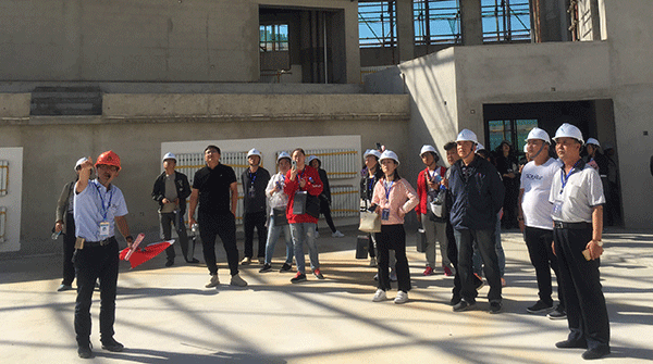 觀摩活動開展前,工程公司技術(shù)負(fù)責(zé)人丁園園就項(xiàng)目綠色施工、質(zhì)量安全標(biāo)準(zhǔn)化施工、BIM技術(shù)運(yùn)用等方面作了經(jīng)驗(yàn)介紹。觀摩中,項(xiàng)目技術(shù)負(fù)責(zé)人洪陽就項(xiàng)目BIM技術(shù)在場地布置模擬、樣板策劃、碰撞檢查與優(yōu)化、可視化交底、凈高分析與控制、日常安全質(zhì)量管理等方面做了詳細(xì)講解。