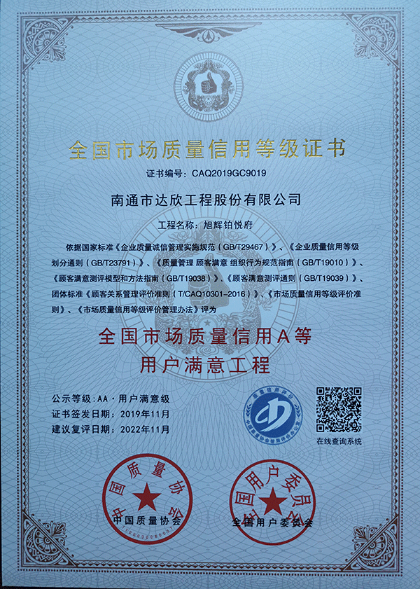 一舉獲得三項殊榮不僅僅是向外界展示了達欣集團在工程建設(shè)上的技術(shù)實力和精品工程信譽度,更是達欣集團在工程建設(shè)中以“質(zhì)量贏得市場,使企業(yè)建立較強的市場競爭力”。