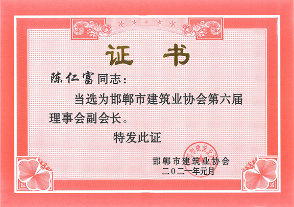2021年1月8日,邯鄲市建筑業(yè)協(xié)會第六屆會員大會第二次會議在邯鄲市舉行。會上,第三工程公司總經(jīng)理陳仁富當(dāng)選為邯鄲市建筑業(yè)協(xié)會第六屆理事會副會長。