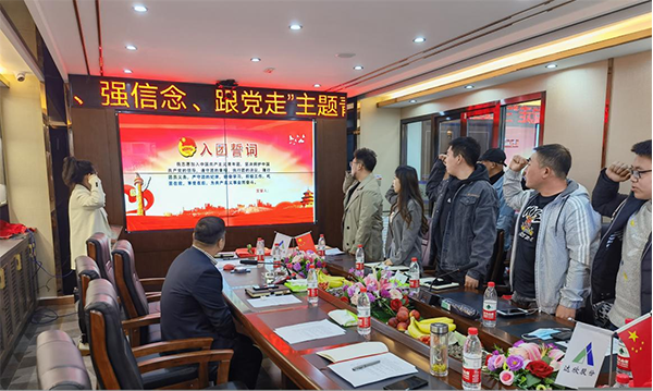 活動首先重溫了入團誓詞,觀看黨的故事100講-五四運動、達欣集團黨史發(fā)展紀錄片。隨后,優(yōu)秀青年代表進行了慷慨激昂的“我為建黨100周年獻禮”發(fā)言以及青年突擊隊授旗儀式。為活躍現(xiàn)場氣氛,還進行了擊鼓揚花唱紅歌趣味小游戲。