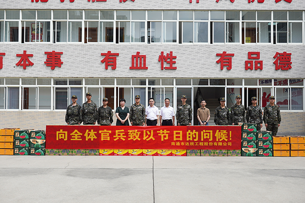 為慶祝中國(guó)人民解放軍建軍96周年,大力弘揚(yáng)愛軍擁軍的光榮傳統(tǒng),推動(dòng)軍民融合發(fā)展,7月31日,達(dá)欣集團(tuán)黨委、工會(huì)聯(lián)合海安市人武部組織魯班傳人志愿服務(wù)隊(duì)成員來到武警南通支隊(duì)執(zhí)勤二大隊(duì)海安中隊(duì)開展“愛國(guó)擁軍‘欣’向黨,共敘軍民魚水情”擁軍慰問活動(dòng),集團(tuán)在海領(lǐng)導(dǎo)劉厚純、楊靜參加活動(dòng)。