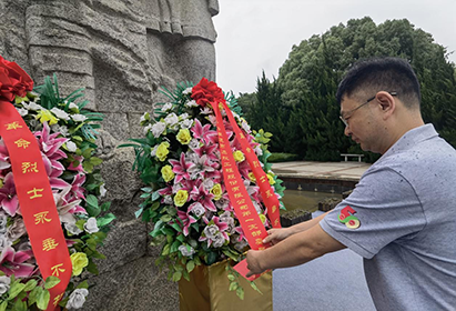 在抗日英雄群雕廣場,全體黨員懷著對革命烈士崇高的敬意,向革命英雄敬獻花籃,鞠躬悼念中銘記歷史。支部書記倪志榮帶領(lǐng)全體黨員重溫入黨誓詞,面對鮮紅的黨旗和莊嚴的誓詞,共同高舉右拳,莊嚴宣誓。