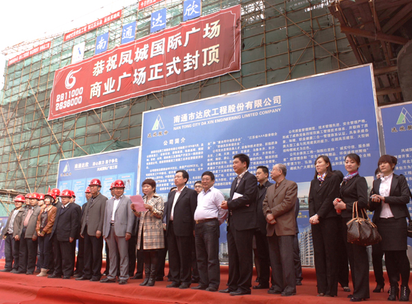 在4月15日的裙樓封頂儀式上,唐山天壤房地產(chǎn)開發(fā)有限公司闞春鳳董事長(zhǎng)首先向全體參建人員表示衷心的感謝,對(duì)達(dá)欣公司在工程建設(shè)中所做的努力給予高度評(píng)價(jià)和充分肯定,她在最后致詞中堅(jiān)信:在達(dá)欣股份等諸多品牌公司的通力協(xié)作之下,在全體參建人員的共同努力下,鳳城國(guó)際廣場(chǎng)項(xiàng)目一定會(huì)如期完成。