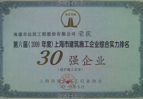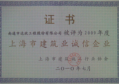 達欣股份首次挺進進滬施工企業(yè)前30強(進滬施工的江蘇企業(yè)僅有八家),這標志著公司跨入了進滬強企的第一方陣,標志著公司進滬施工進入了新階段!同時公司還再次榮獲了“上海市建筑業(yè)誠信企業(yè)”稱號。上海市的主流媒體“解放日報”、行業(yè)報刊“建筑時報”均予以報導(dǎo)。