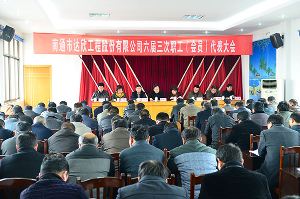 公司六屆三次職工(會員)代表大會于2015年2月26日上午在總部四樓會議室隆重召開。海安縣總工會經(jīng)審委主任陸威生、海安縣建筑工程管理局副局長、建筑工會主席徐培鴻應邀前來參加了會議。