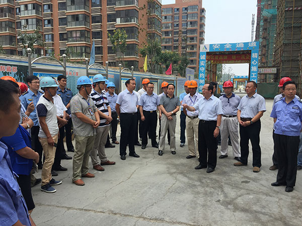 8月27日上午,宿遷市副市長李榮錦率市住建局主要負責人及宿遷市10余家建設單位、監(jiān)理單位、施工單位負責人蒞臨第一工程公司承建的星月城二期進行參觀考察,這是李榮錦副市長繼8月18日檢查指導后第二次來我項目,重點推介項目揚塵噴水設備系統(tǒng)控制做法及現場安全文明標準化施工特色。