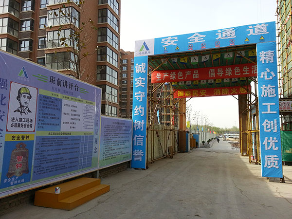 參觀考察結束前,李副市長在工地現場發(fā)表講話。首先,他對本項目現場布置、標準化定型化的臨時設施以及綠色防塵控制措施給予了充分肯定,特別是對現場布置的車輛沖洗裝置更是贊不絕口,他要求參與考察的各施工方能夠大力推廣此種車輛沖洗裝置做法,為宿遷環(huán)境保護作出貢獻;其次,他要求市住建局要加強建筑工地督查,對不符合要求的建筑工地要求限期整改,并按規(guī)定對所有建筑工地進行統(tǒng)一檢查驗收,對整改不到位的,追究相關責任人責任,按相關規(guī)定進行處理;最后,他要求前來參觀的建設、監(jiān)理、施工單位要借鑒本項目部的現場管理模式,認真總結自身管理不足之處,務必學以致用,促進宿遷市施工現場管理工作和安全工作上走上新臺階。